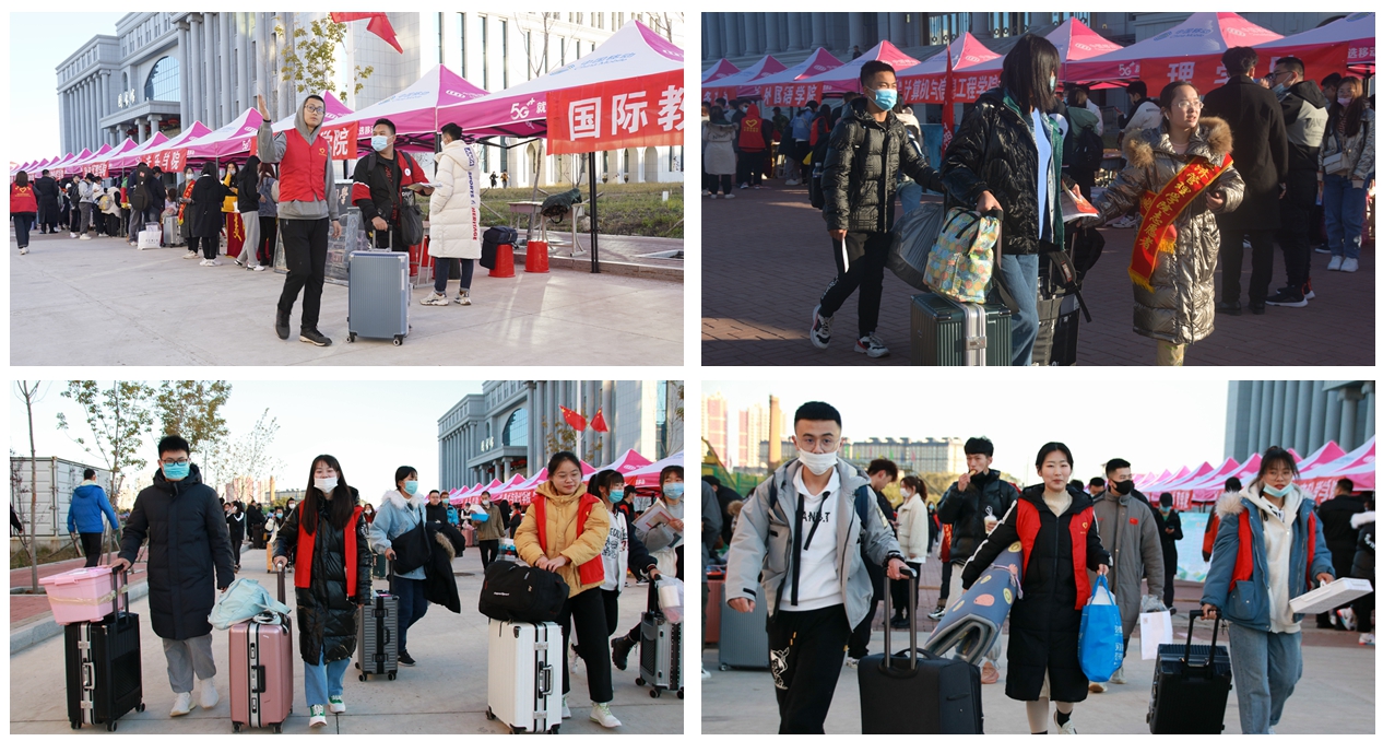 学校坚持“以学生为本”的迎新工作原则,创新举措,面向新生提供“一对一”和“多对一”的在校生志愿服务。从报到前夕在家就收到了各学院志愿者发送的温馨短信提醒,到报到日的全程引导陪同、办理入校手续,让新生第一时间感受到“入校即进家”的关怀。今年,学校继续在火车站设立接站点,安排志愿者和专车接送新生和家长。党委副书记张焕强一早便来到火车站,视察指导迎新工作,慰问奔走在迎新一线的志愿者们。