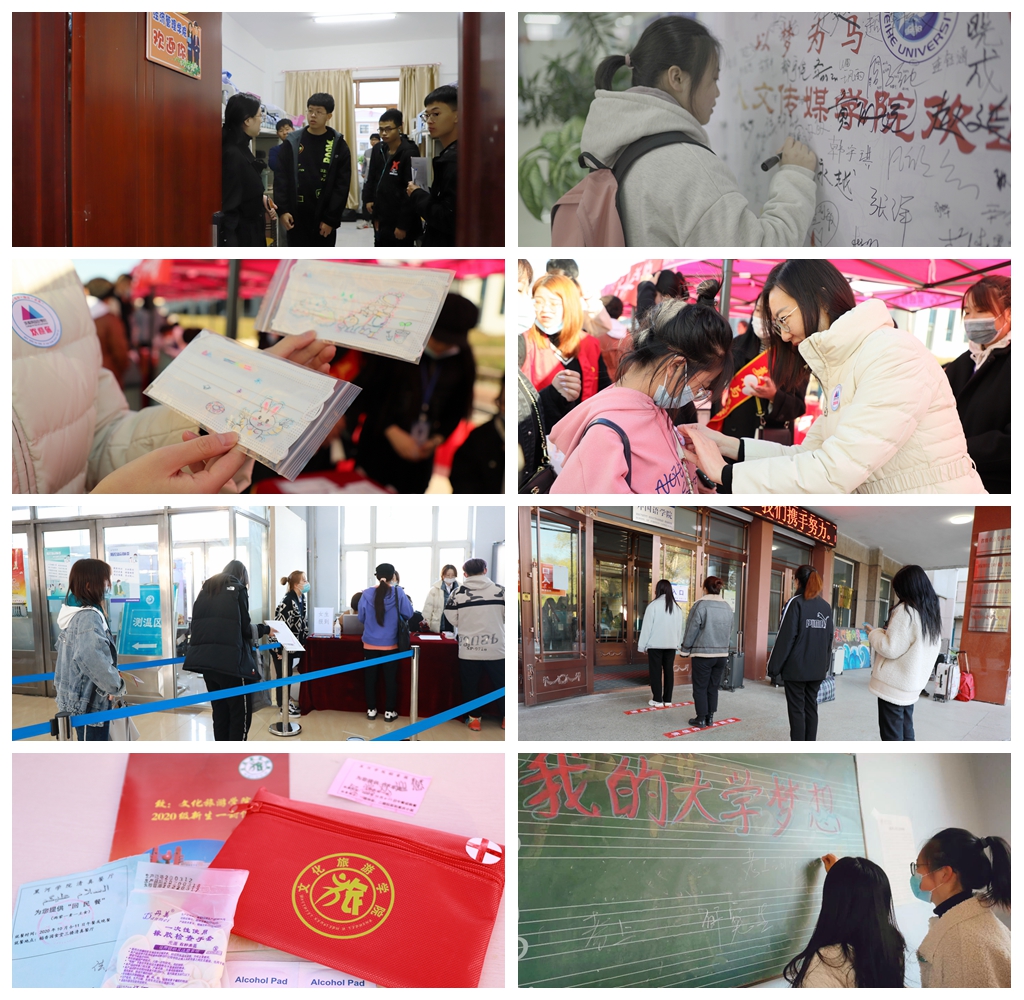 在各学院报到注册地点,各学院院长、党总支书记、辅导员、班主任和学生干部早已等候,为新生快速、准确地办理报到、住宿、建立学籍档案等事务;财务处提供四大缴费平台,包括现金缴费、自助缴费机缴费、支付宝缴费、微信缴费,新生可根据需要自主选择;校团委设置了新生咨询服务台,并组织了百余名青年志愿者为新生全程提供咨询、答疑、引领等服务,保证不让每一名新生产生困惑;图书馆通过抖音短视频做好线上培训,为新生讲解馆藏资源使用方法、微信平台及读者QQ群功能;学生工作部为新生准备了入学“一瓶水”和爱心防疫包,制作了学校平面图、学校简介、黑河市区图和公交路线图,帮助新生和家长尽快完成报到手续、熟悉了解学校、方便出行,此外,学生工作部还精心制作了录取通知书、学生证和车票背景墙,供新生和家长拍照留念,寓意新生从此踏上了新的征程;为确保每一位新生顺利入学,学生工作部还开设了专门的“绿色通道”,方便办理助学贷款等事宜,并为家庭经济困难学生提供免费行李和军训服,暖心关怀家庭经济困难新生;保卫处增设临时停车场,引领送新车辆按秩序停车,校内保安时时巡逻,确保校园秩序井然;后勤管理处在稻香园餐厅开设清真窗口,并为每位新生准备的免费“下车面”,还从校园环境、新生住宿、饮食安全、医疗服务等多个方面进行了精心的准备,全力做好后勤保障工作,让新生感受到学校如家般的温馨。