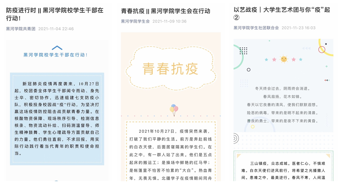 这个冬天,心很暖!2021年10月末,新冠肺炎疫情突袭黑河,一场疫情防控阻击战全面打响。按照党中央国务院、省委省政府、省委教育工委、教育厅、黑河市防疫指挥部的疫情防控工作要求,学校充分认识疫情的严峻性和复杂性,以对广大师生员工生命安全和身体健康极端负责的态度,将其作为重要政治任务,立即启动学校公共卫生类突发事件应急预案,学校纪委严明新冠肺炎疫情防控工作纪律要求,全校上下迅速反应、迅速启动、迅速部署、迅速落实,有序推进。