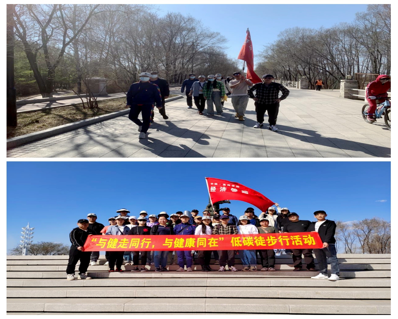 为丰富教职工业余生活,推动全民健身运动,增强工会组织活力,践行倡导低碳生活。5月8日经济管理学院分工会、财务处共同举办“与健行同行,与健康同在”低碳徒步行活动,教师们环绕世纪广场至黑河大岛一周,一边享受着大自然的美丽风光,一边感受着低碳出行的乐趣,同时锻炼了体魄,倡导宣传了“绿色低碳环保”科学健康的理念,进一步增强了教职工凝聚力、团队意识。
