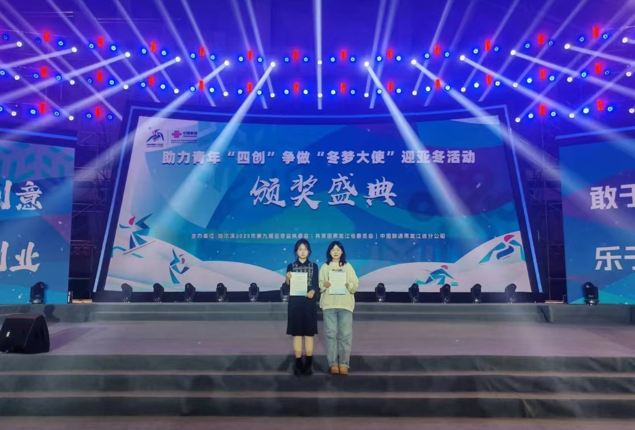 本网讯(特约记者 张彦涛)12月4日,由第九届亚冬会执委会、团省委以及中国联通公司共同举办的“助力青年‘四创’ 争做‘冬梦大使’”迎亚冬系列活动落下帷幕。我校两名同学的作品获得了中国联通"冬梦大使"荣誉称号。