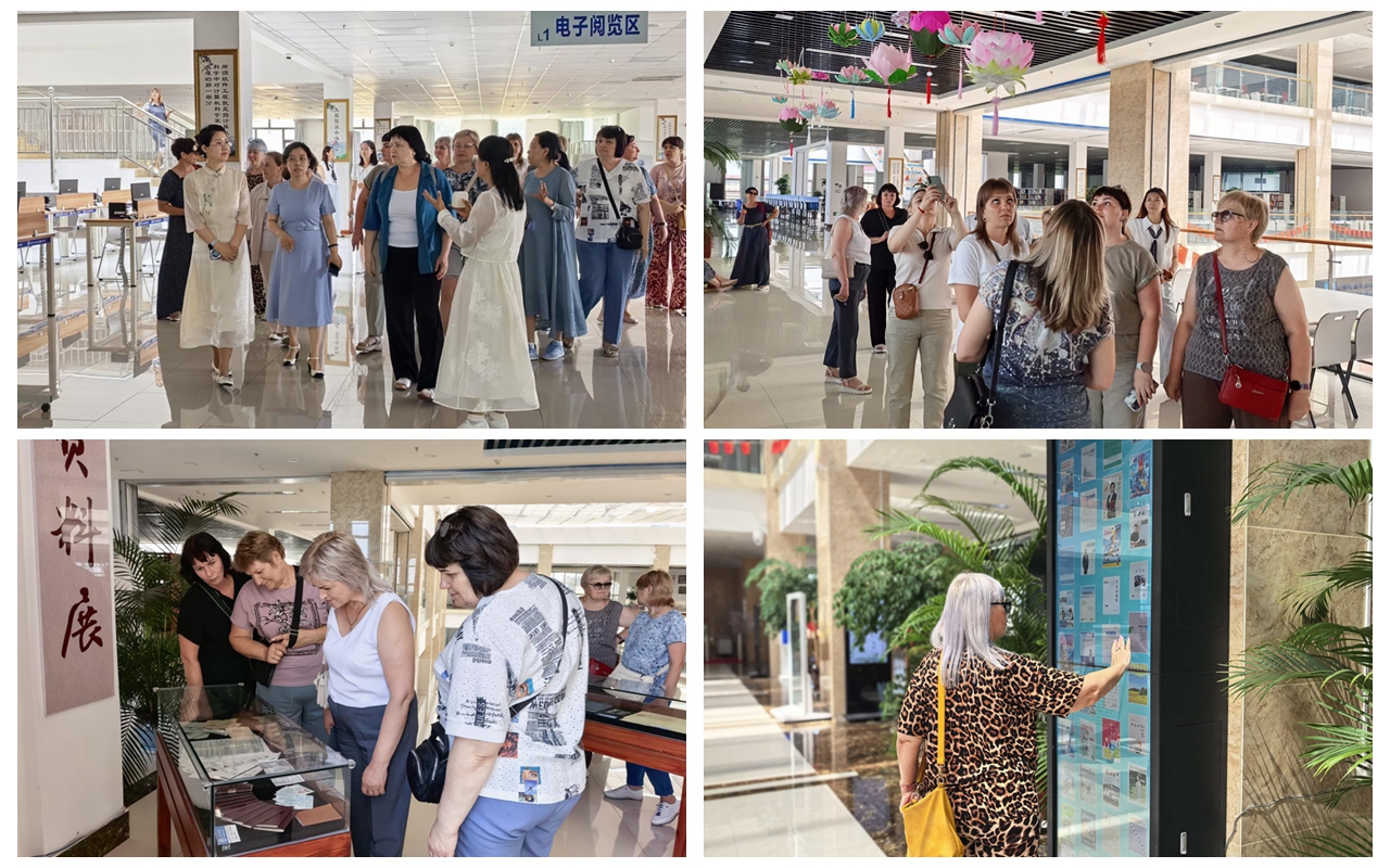 我校图书馆馆长向代表团详细介绍了馆藏文献资源、数字化服务平台、智能化管理系统以及中俄馆际交流合作情况,代表团重点参观了电子阅览区、特色文献馆藏区和智能借阅系统,亲身体验了人脸识别借阅系统、数字阅读机等现代化服务设施。