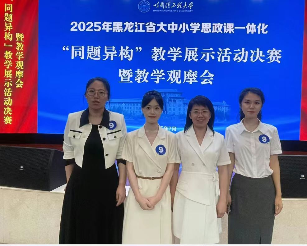 本次活动由黑龙江省教育厅主办、哈尔滨工程大学承办。全省进入决赛的16个团队同台竞技,黑河市大中小学思政课一体化共同体以“铸牢边境安全屏障 做好新时代戍疆人”为主题,按小学、初中、高中、大学学段依次完成教学展示。此次获奖是对黑河市大中小学思政课一体化建设成果的肯定,也是对我校马克思主义学院在思政课教育教学改革与创新方面所取得成绩的认可。