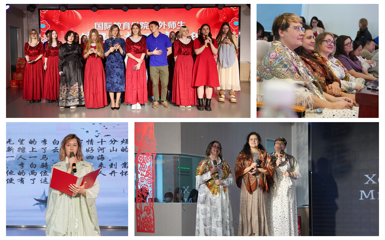 活动现场张灯结彩,年味浓郁。来华留学生身着中华传统服饰,带来中文经典诗朗诵表演,以字正腔圆的发音、真挚饱满的情感,将汉语的韵律之美与新年的喜悦娓娓道来;赴俄留学生则以地道的俄语演绎节目,用细腻的表达传递着跨国情谊。舞台上,歌舞、器乐演奏、小品等节目轮番登场,中外学子同台献艺,时而用中文唱响传统民谣,时而用多国语言合唱新年祝福曲,每一个节目都洋溢着青春活力与文化交融的魅力。台下掌声雷动,欢呼声此起彼伏,不同国籍的中外师生相互喝彩,其乐融融。